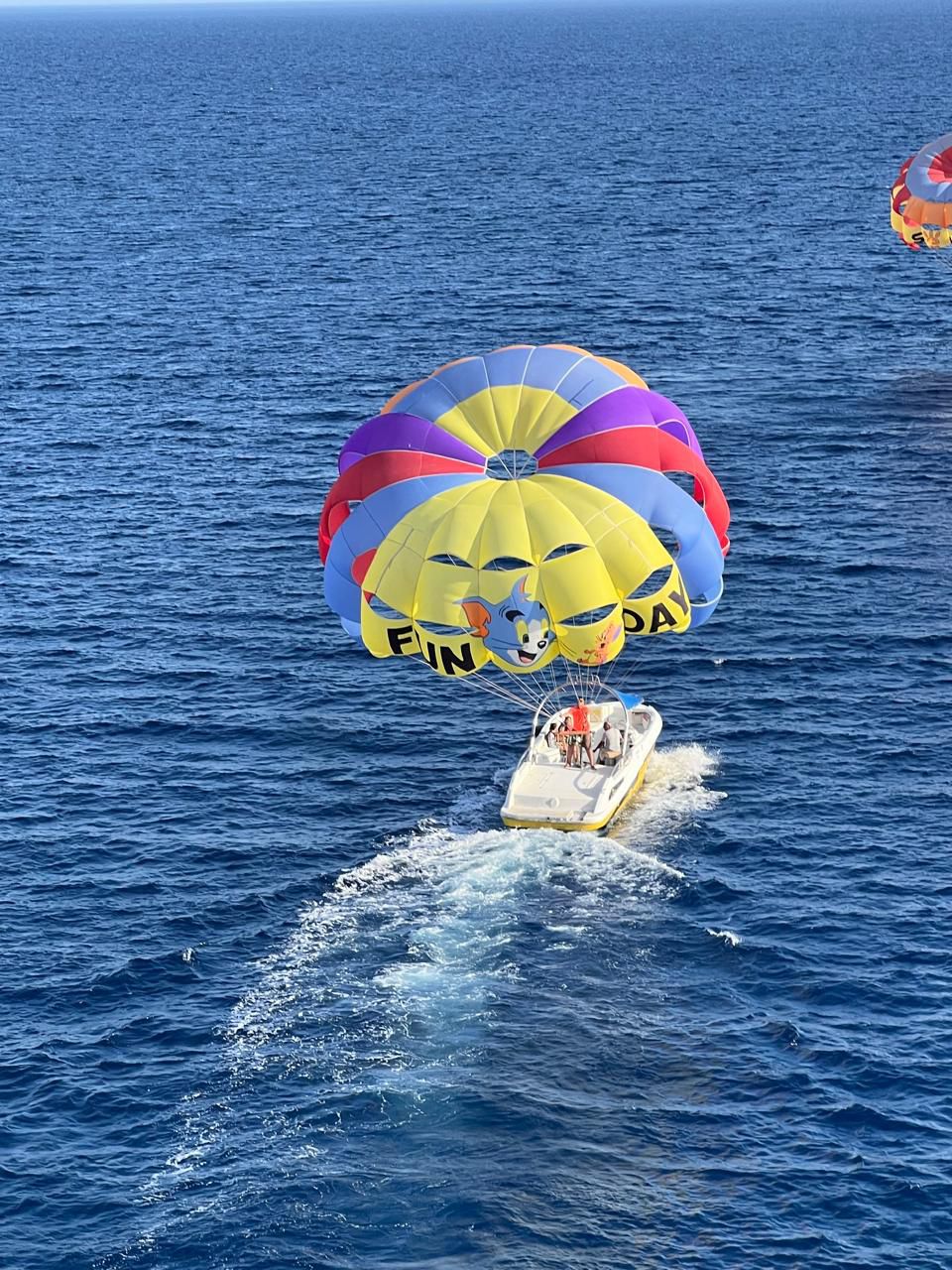 Program obejmuje lot spadochronem nad Morzem Czerwonym, podczas którego można zobaczyć wybrzeże z wysokości. Następnie zaplanowana jest przejażdżka na dmuchanym bananie – popularna atrakcja wodna realizowana na otwartym morzu.